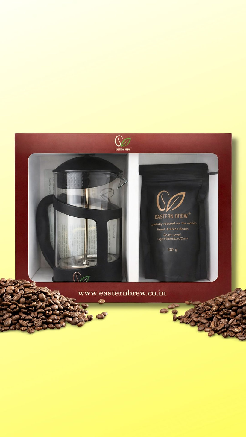 Harvested from themisty hills of Manipur, Eastern Brew coffee is expertly roasted and freshly ground to preserve its bold flavor, smooth texture, and natural goodness. The French press method allows essential oils and antioxidants to remain intact, delivering a deeper taste and enhanced health benefits in every cup.