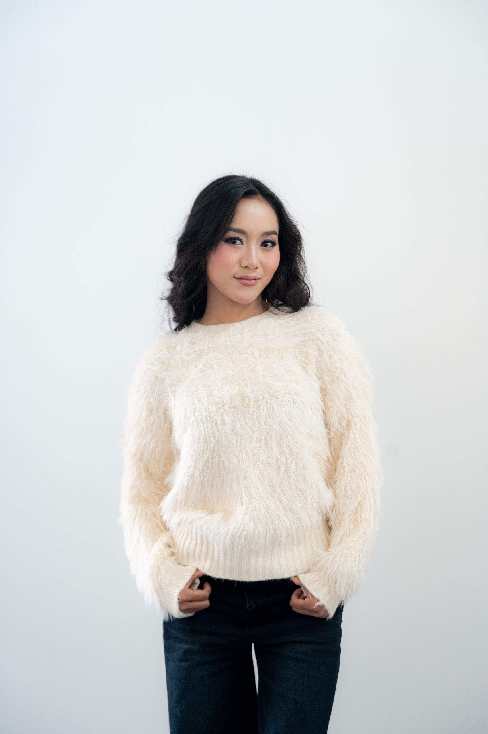 • Elegant round neck with cozy full sleeves