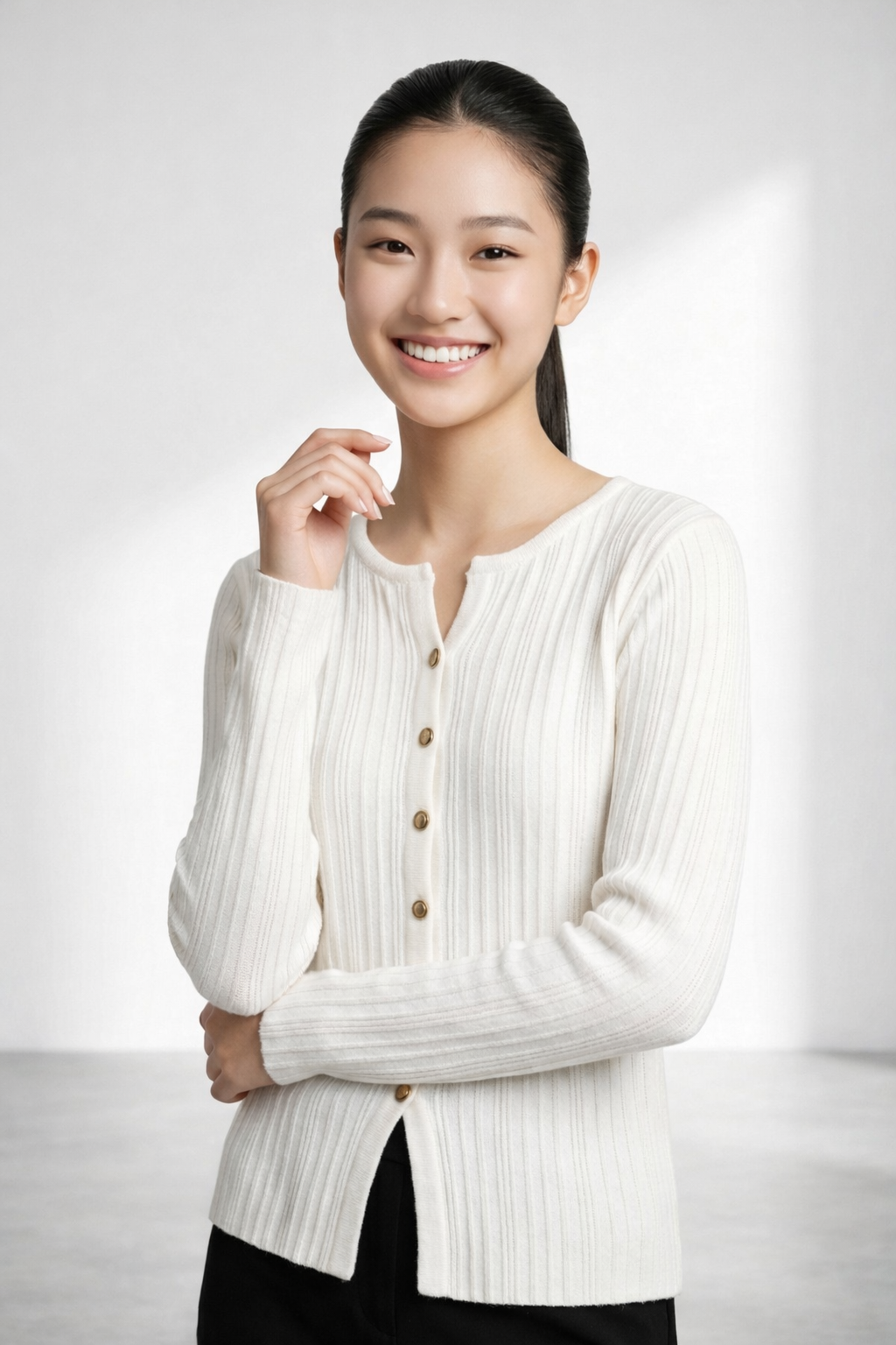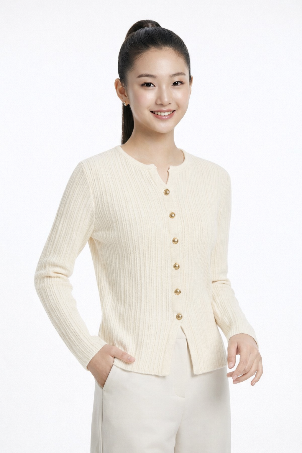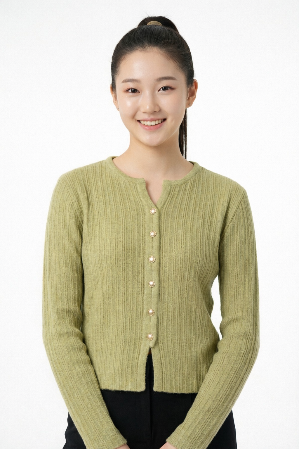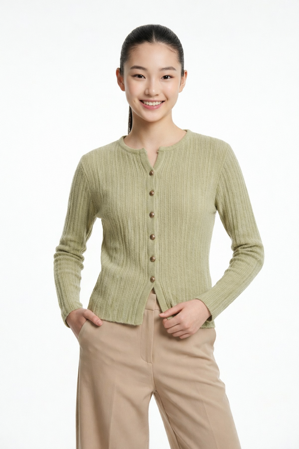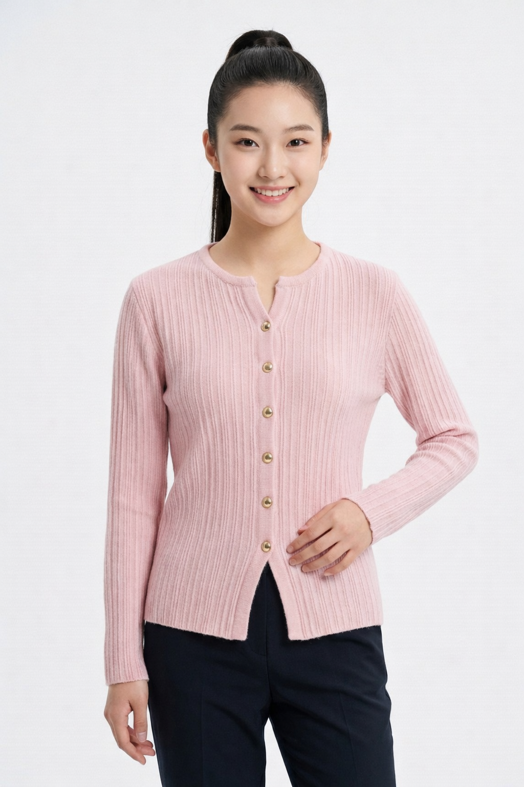 • Soft ribbed knit pullover with front button design